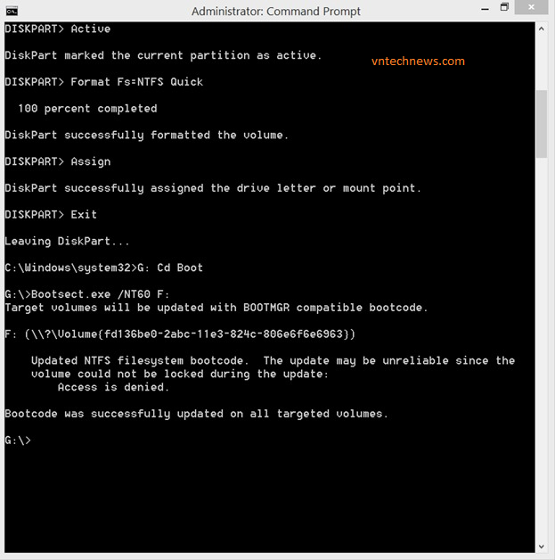 Bootsect.exe /NT60 F: